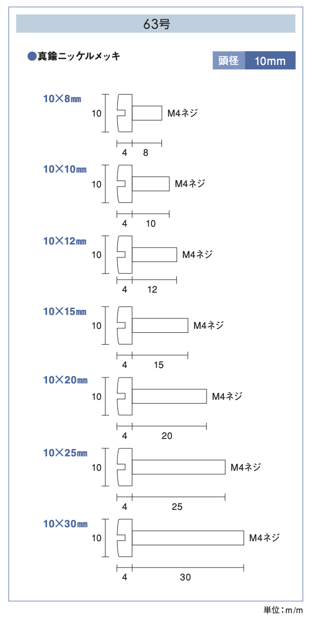 63号・化粧ビス/真鍮ニッケルメッキ/M4