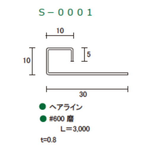 アルミ片長チャンネル/8mm・ビス穴なし/CS艶有/1840mm