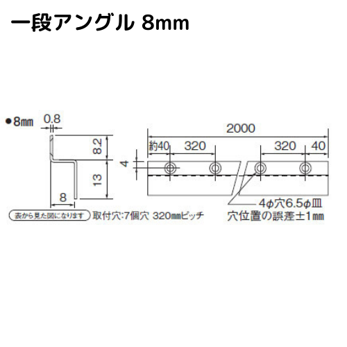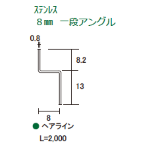 ステンレス/8mm一段アングル/ヘアライン/2000mm