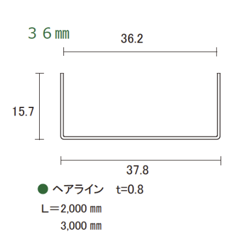 ステンレスチャンネル/36mm/ヘアライン/36.2x15.7x2000mm