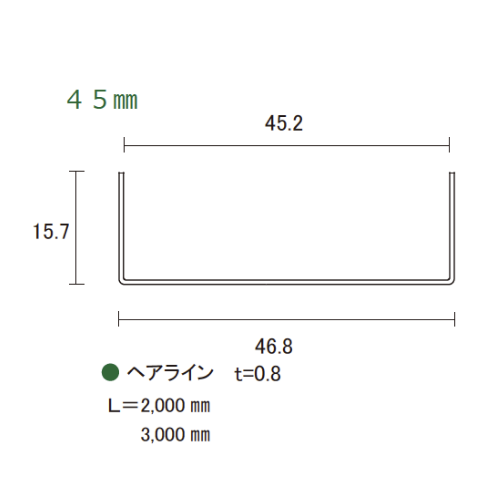 ステンレスチャンネル/45mm/ヘアライン/45.2x15.7x3000mm