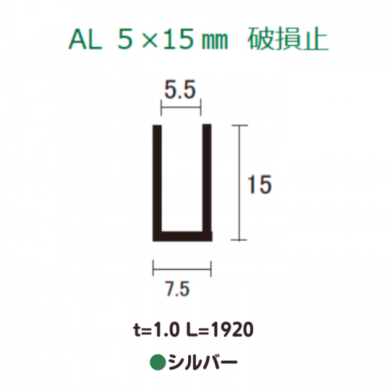 アルミ/5x15mm破損止/シルバー/5.5x15x1920mm