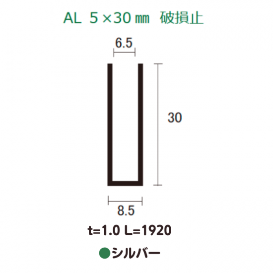 アルミ/5x30mm破損止/シルバー/6.5x30x1920mm