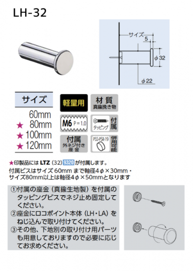 ロッドフック アップタイプ9φ/9RU/300mm/クロームメッキ