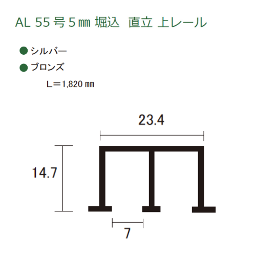 アルミはかま用レール/5mm車用(はかま用)下レール/B2シルバー/3640mm