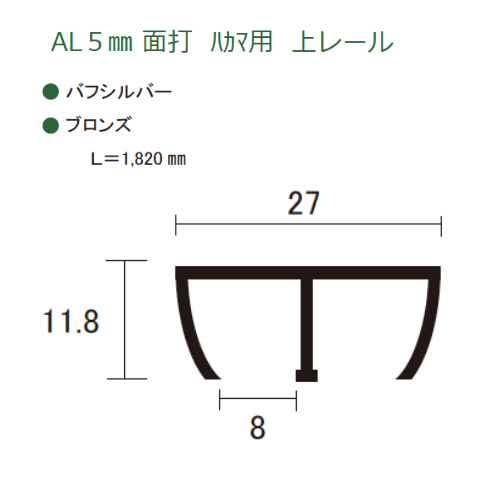 アルミはかま用レール(5mmx40H用)/5mm面打上レール/ブロンズ/1820mm