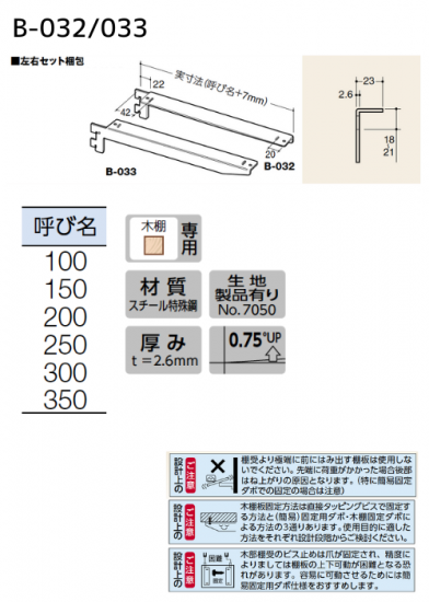 木棚用棚受/B-032/033(左右1セット)/350mm/クロームメッキ