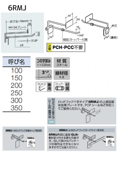 ロッドフック 十手タイプ6φ/6RMJ(シール貼り用)/100mm/クロームメッキ