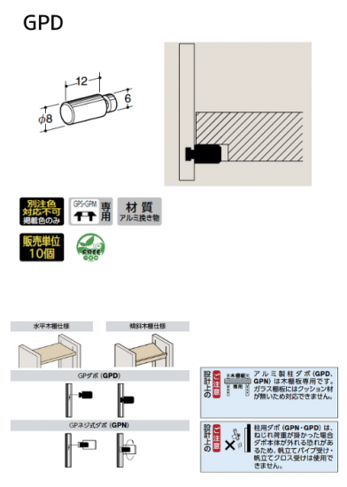 GPダボ/GPD(10個入)/8mm/アルシルバー