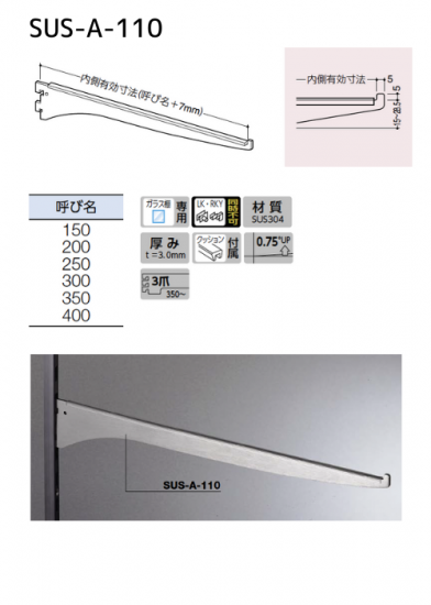 ステンレススリムブラケット/SUS-A-110/300mm/ステンレスヘアーライン