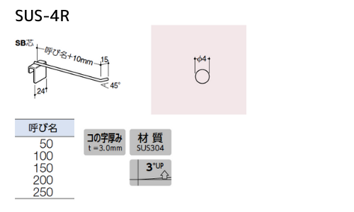 ロッドフック 十手タイプ6φ/6RMJ(シール貼り用)/250mm/クロームメッキ