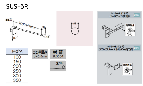 ステンレスロッドフック6φ/SUS-6R/ステンレスヘアーライン