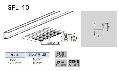 ガラスガード10フロント用/GFL-10/900mm/透明軟質樹脂
