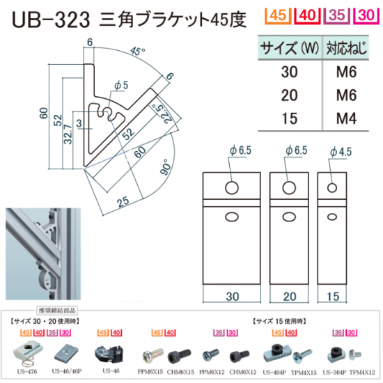 UB-323/三角ブラケット45度(アルミ)/シルバー/20
