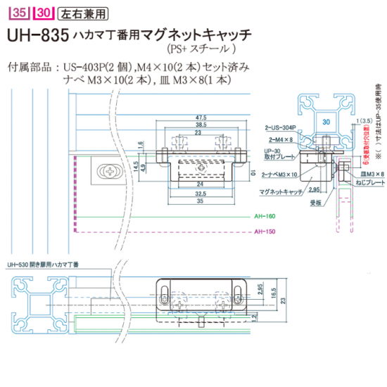 UH-835/ハカマ丁番用マグネットキャッチ/ブラック/30