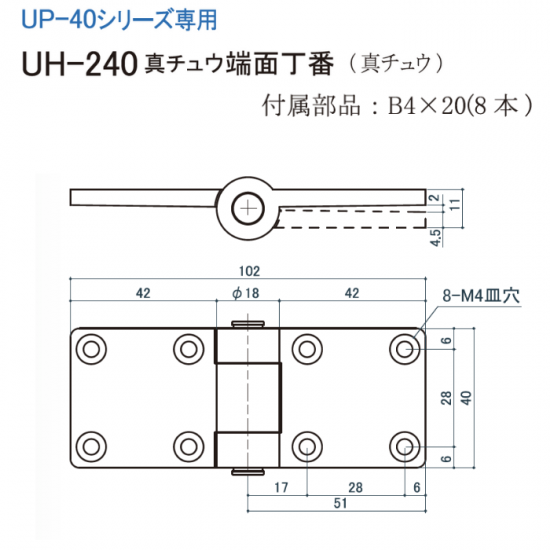UH-240/真チュウ端面丁番/クローム(バレル研磨)/40