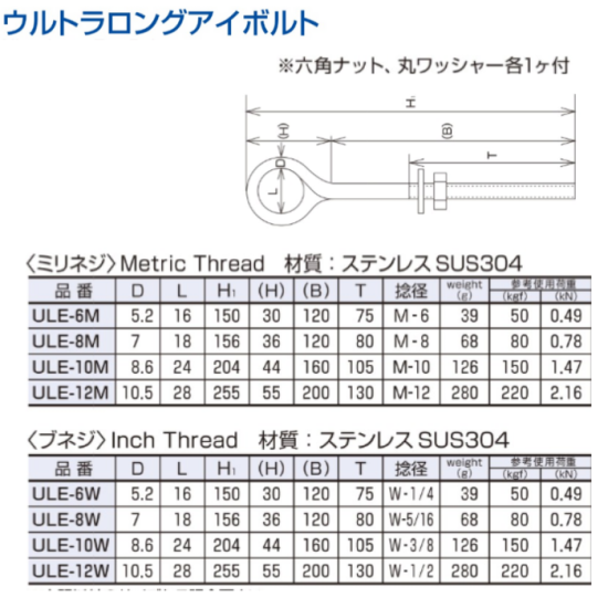 ウルトラロングアイボルト/ULE-8W/2分5厘ネジ