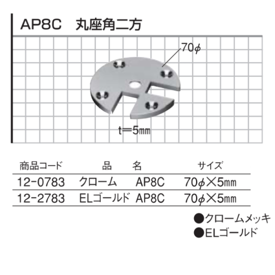スクリーンポール(AP-38)/ゴールドメッキ/AP8C 丸座/角二方