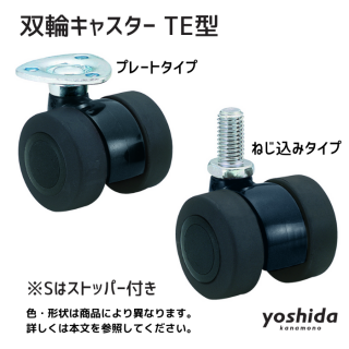 双輪キャスター(プレートタイプ)TE型/TE-50S(ストッパー付き)/黒エラストマー車/50mm