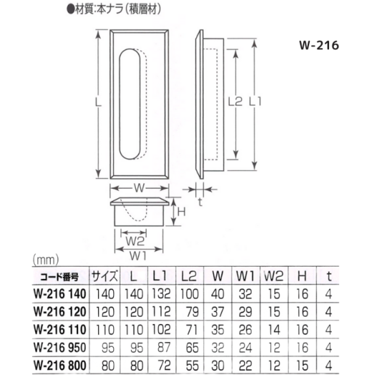 【メーカー廃番】ナラ/堀込取手/W-216/140【残りわずか】