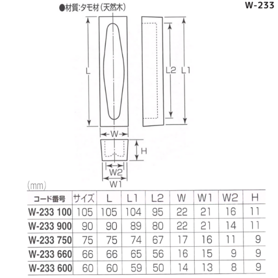 【メーカー廃番】タモ/流線引手/W-233/90【残りわずか】