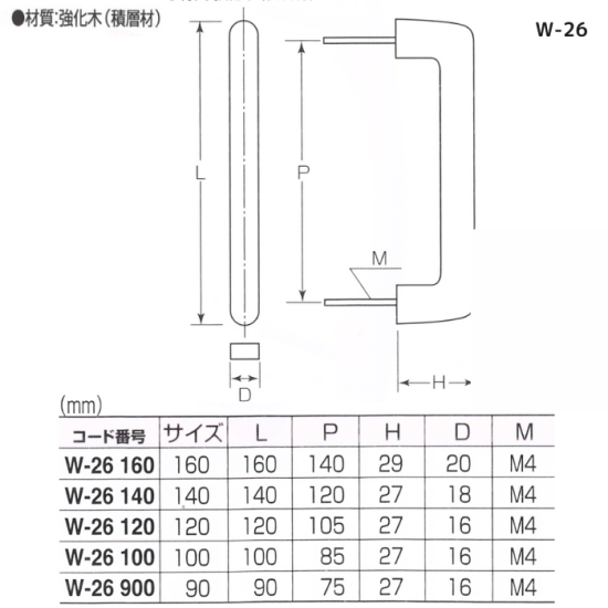 白木/平型取手/W-26/140