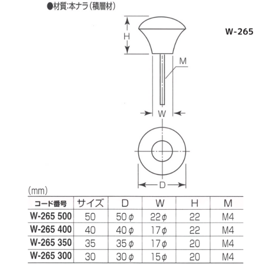【メーカー廃番】丸ツマミ/W-265/30【残りわずか】