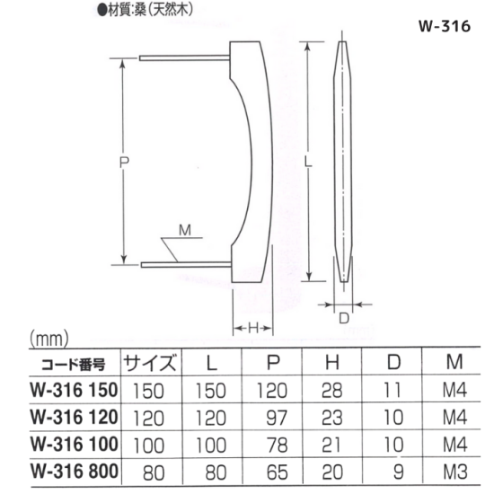 【メーカー廃番】桑/阿波座付取手/W-318/120【残りわずか】