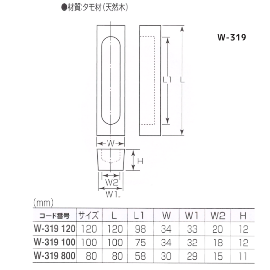 TOP >木製シリーズ >戸引手/タモ