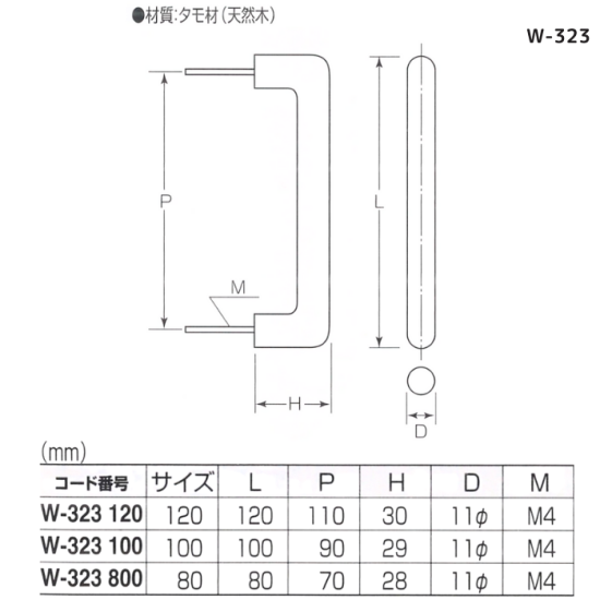 TOP >木製シリーズ >取手・ハンドル/タモ