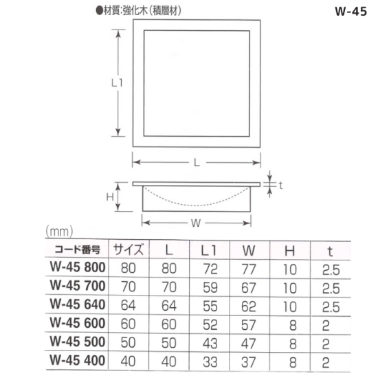【メーカー廃番】白木/B型角引手/W-45/50【残りわずか】