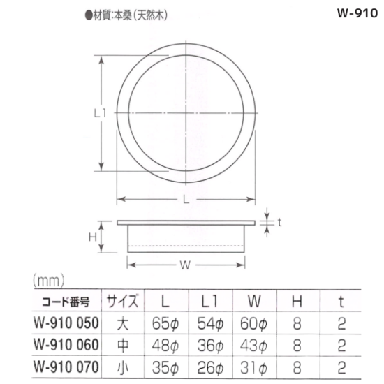 【メーカー廃番】桑/丸引手/W-910/大【残りわずか】