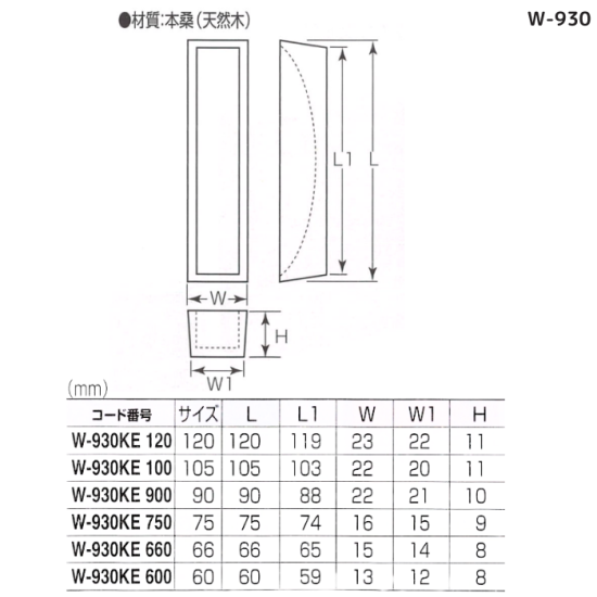 【メーカー廃番】白木/内丸引手/W-24/90【残りわずか】