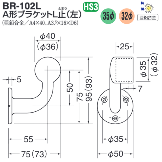 【メーカー廃番】グリップブラケット/AG/35Φ/BR-190【在庫限り】