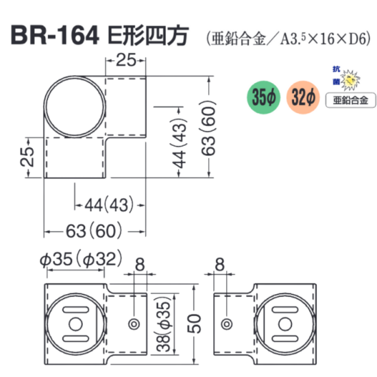 UP-402/Uポール コーナー(90°2方)/オフホワイト/2450