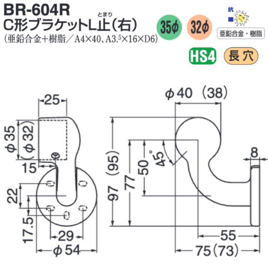 ホルダー用ブラケット(Rタイプ)/R-121GHS/450mm/クローム