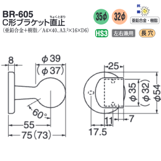 【メーカー廃番】グリップブラケット/アンバー/35Φ/BR-190【在庫限り】