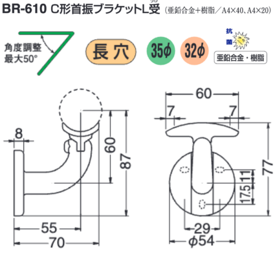 C形首振ブラケットL受/アンバー/35Φ/BR-610