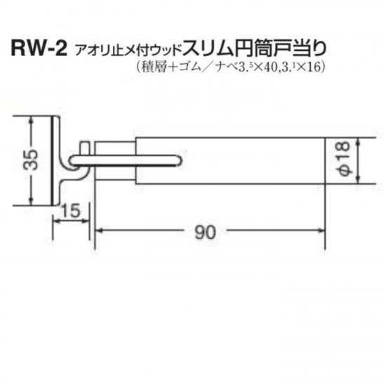 RW-2/アオリ止め付スリム円筒戸当り/ウッド/90