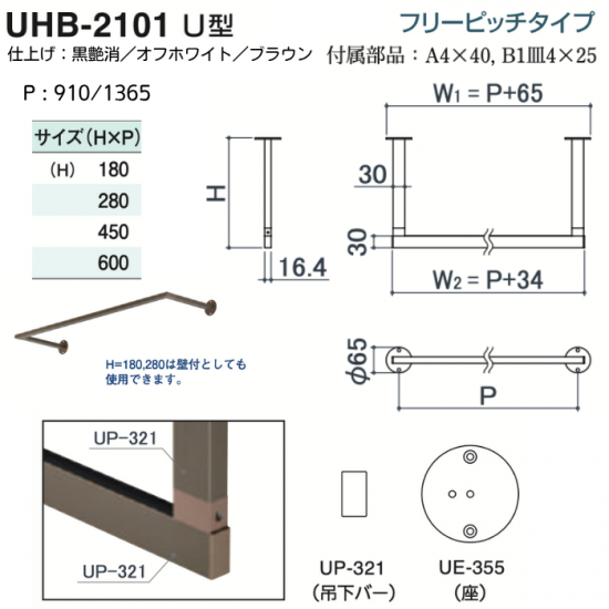 UHB-2101/U型ハンガーバー/オフホワイト/280x910