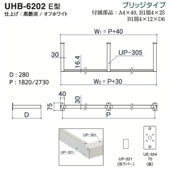 UHB-3201/E型ハンガーバー/オフホワイト/600x2730