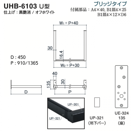 UHB-2309/L型ハンガーバー/オフホワイト/450x1365
