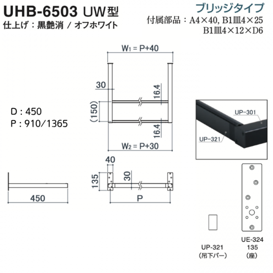 UHB-2101/U型ハンガーバー/オフホワイト/450x1365