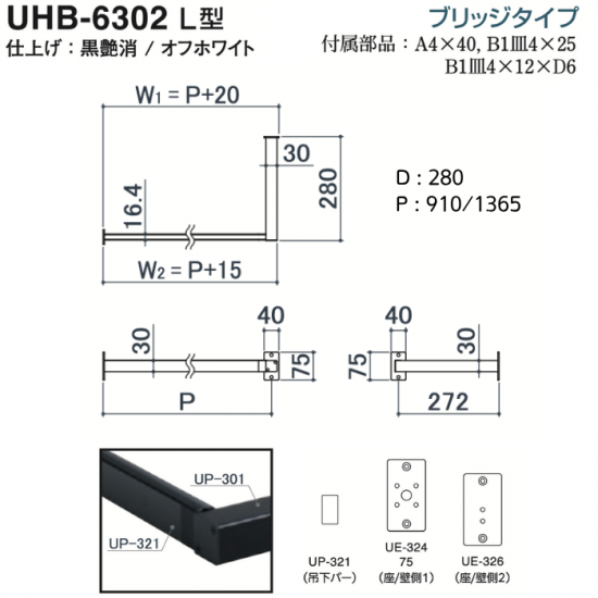 UP4-404/Uポール クロス(4方)/黒艶消し/2100