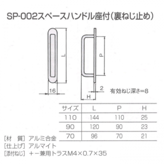 SP-002-90/スペースハンドル座付(裏ねじ止め)/黒/90