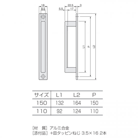 ■付属品:+皿タッピンねじ3.5x16 / 2本