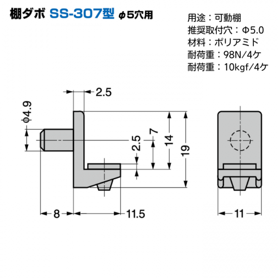 TOP >棚ダボ >SSシリーズ(差込ダボ)