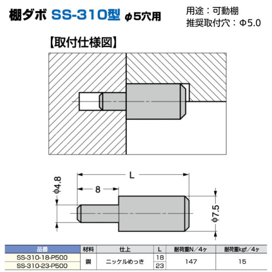 TOP >棚ダボ >SSシリーズ(差込ダボ)