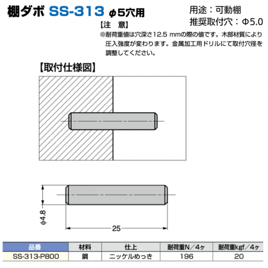 TOP >棚ダボ >SSシリーズ(差込ダボ)