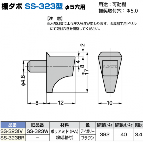 TOP >棚ダボ >SSシリーズ(差込ダボ)